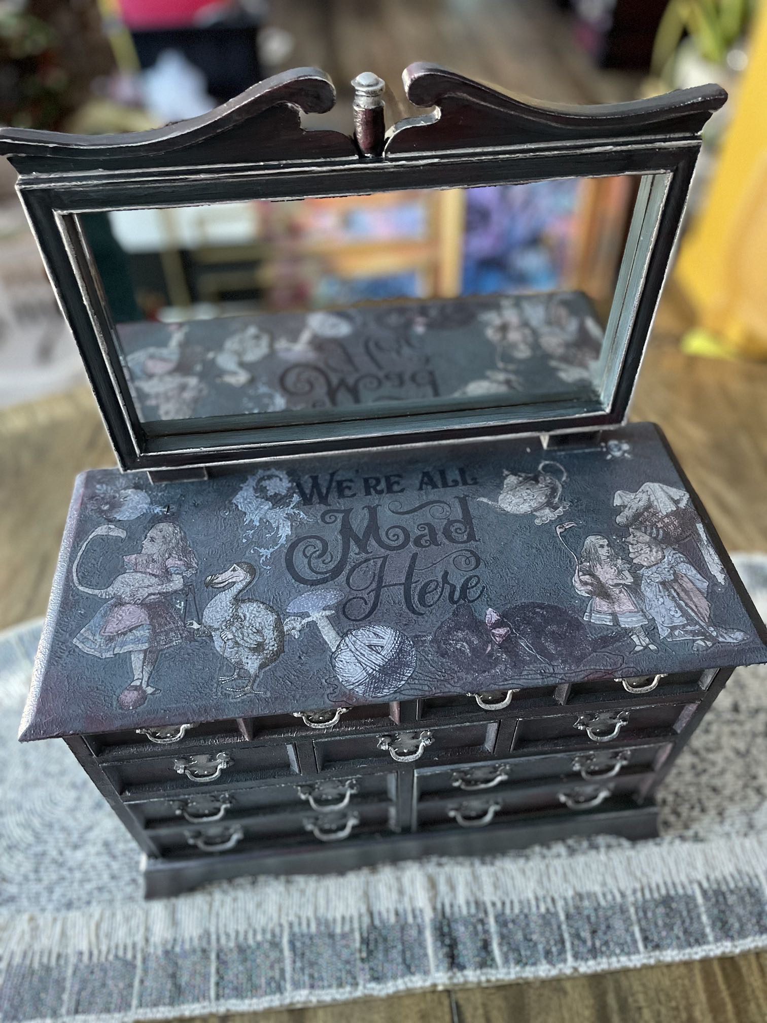 Alice in Wonderland Vintage Jewelry Box – “We’re All Mad Here”