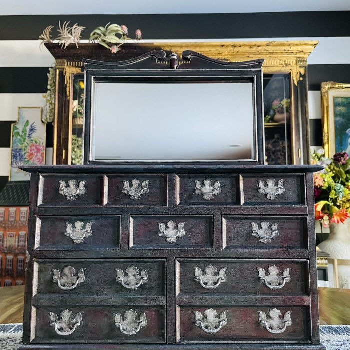 This is more than a vanity — it’s a story, a statement, and a throne for the modern immortal. This would make a gorgeous vanity or entryway piece.